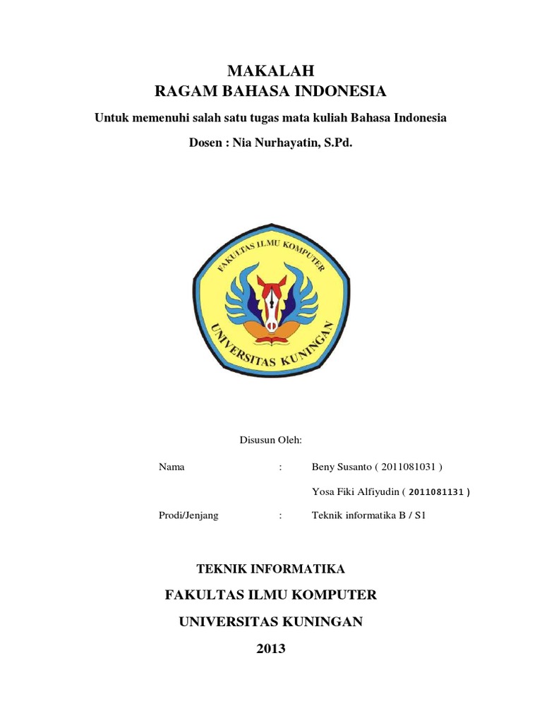 Makalah tentang ragam bahasa indonesia pdf. MAKALAH RAGAM DAN LARAS BAHASA Disusun oleh. Makalah Bahasa Indonesia Ragam Bahasa. Kami mengucapkan banyak terimakasih kepada Ibu Wihartati selaku dosen Bahasa Indonesia terima kasih kepada anggota kelompok IV serta pihak-pihak yang telah banyak.