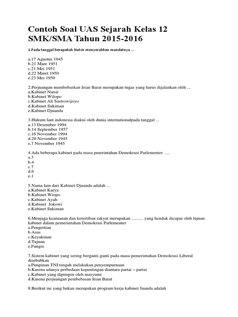 Contoh Soal Uas Sejarah Kelas 12 Smk Pdf Pdf