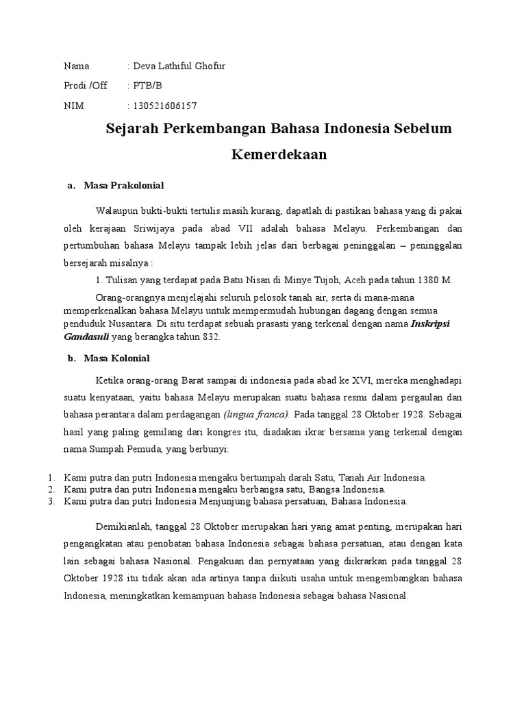 Sejarah Perkembangan Bahasa Indonesia Sebelum Kemerdekaan Pdf